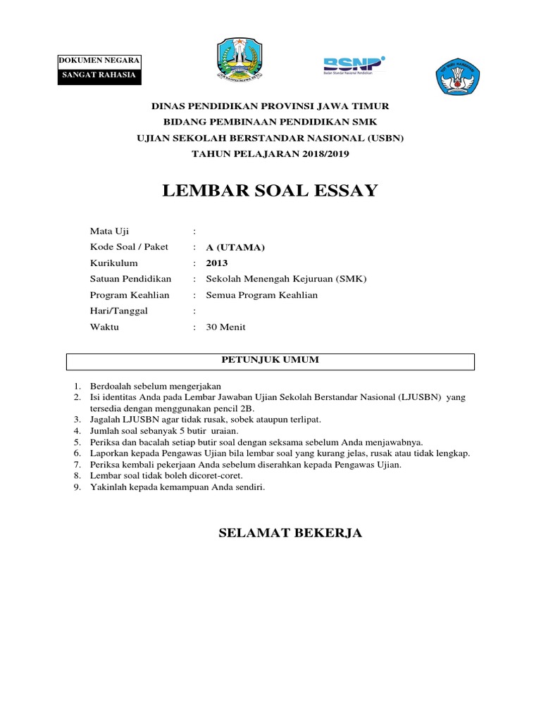 Contoh Lembar Jawaban Ujian Sekolah Tahun 2021 Beragam Informasi